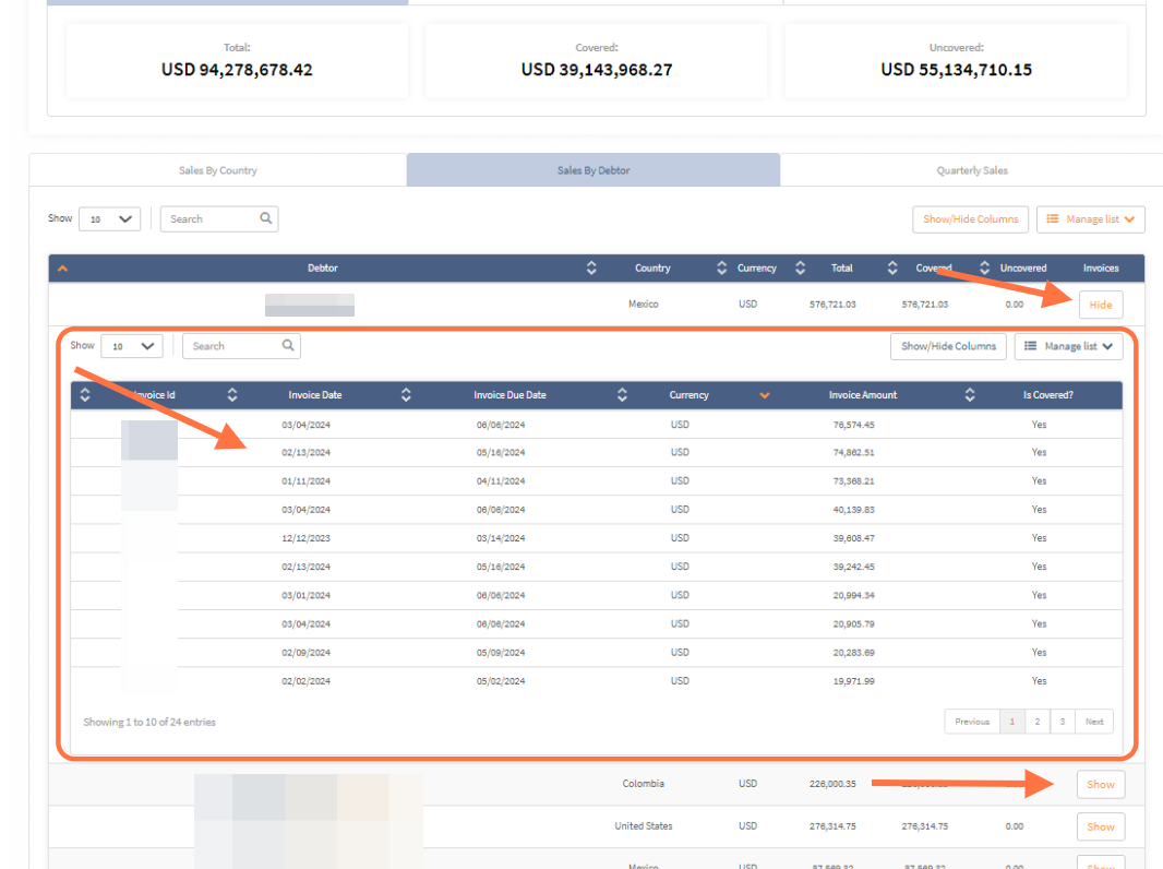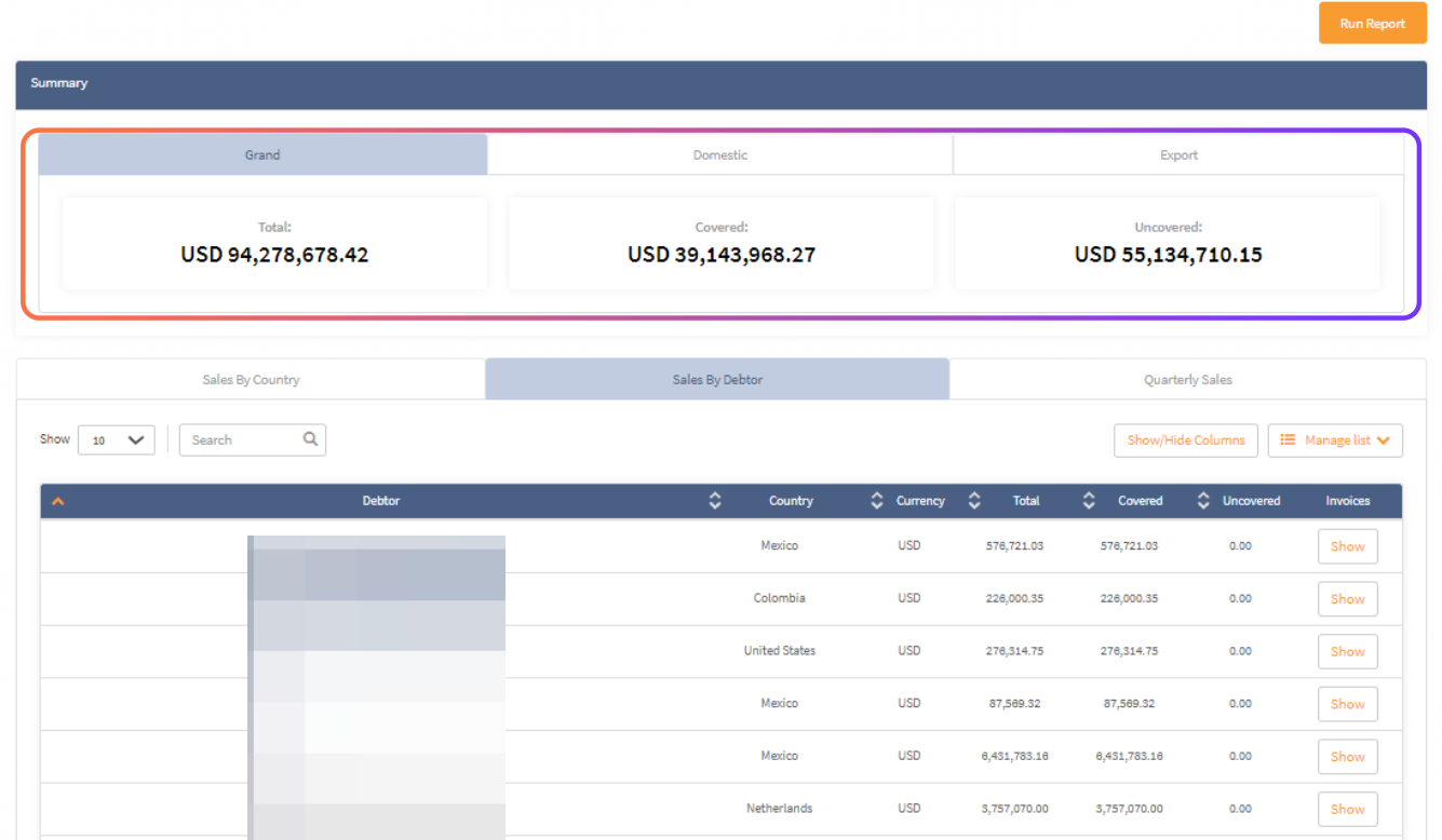 We are pleased to announce improvements to the Sales report inside TRUST. The "Covered vs. Uncovered Sales Report" is a powerful and time-saving feature on TRUST that automatically generates a report summarizing all sales, indicating which are covered under the credit insurance policy and which are not. This report provides a clear breakdown of total sales values, making it incredibly useful when it's time to report to your insurer at renewal!