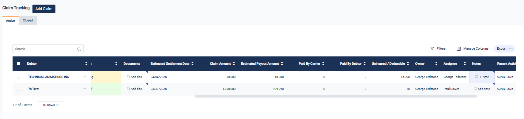 • Seamless Claim Management – Track all active and historical claims in one place