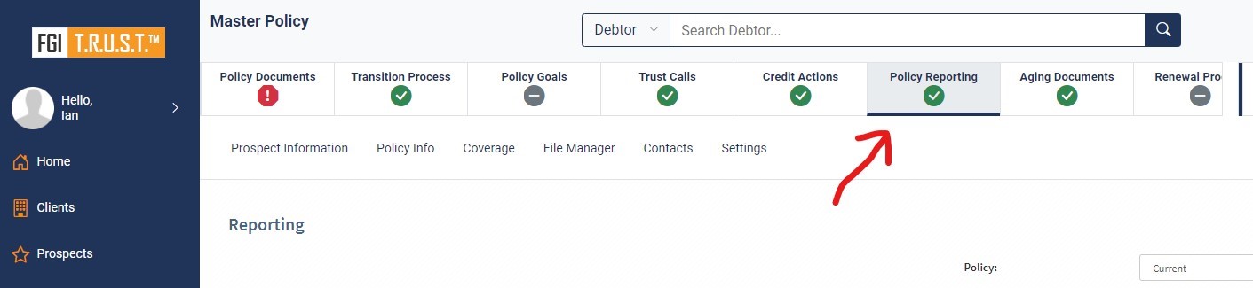 To access this report, navigate to Prospects > Select the Master Policy > and then click on the Policy Reporting Dash light.